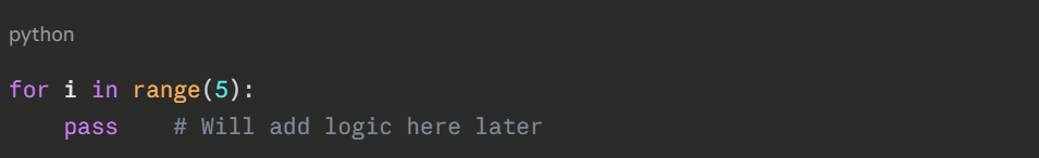 3. Leaving empty code blocks without pass — Python will raise an IndentationError.