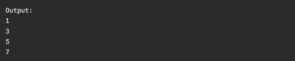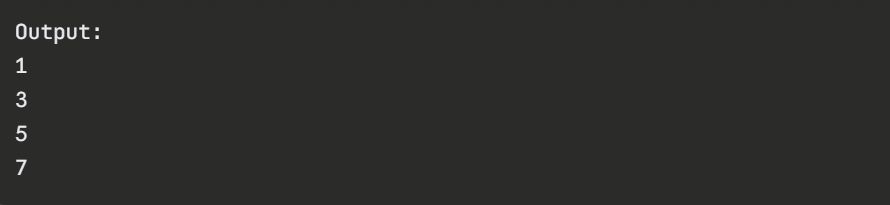 1. Even numbers are skipped by continue.