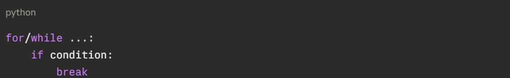 1. Using break when you only want to skip — use continue instead.
