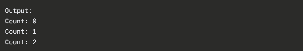 No output is produced. The loop runs and completes without doing anything.