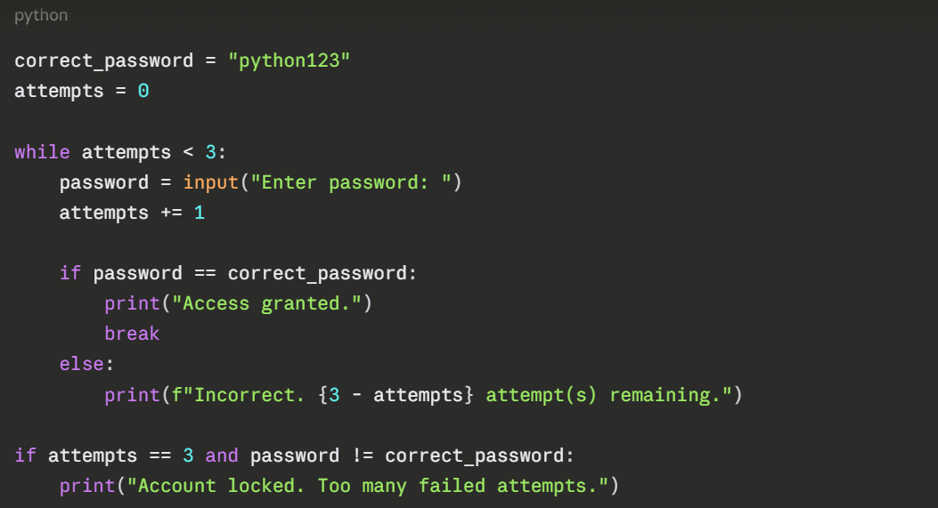 Control flow is what gives a program its intelligence, the ability to make decisions, repeat actions, and respond to different situations. Combining conditional statements and loops to solve real problems is a core programming skill.