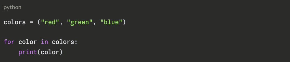 Important: A single-item tuple must have a trailing comma. ("hello") is a string, not a tuple.