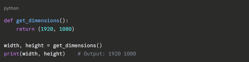 2. Returning multiple values from a function — clean and readable.