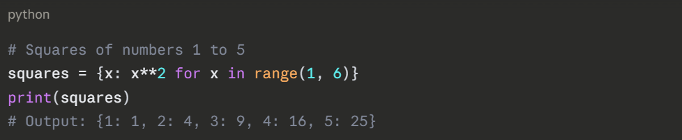 Similar to list comprehension, dictionaries can be built in a single concise line.