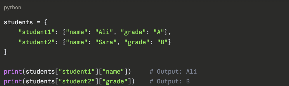 Nested dictionaries are common in AI when handling JSON data from APIs or storing multi-field records.