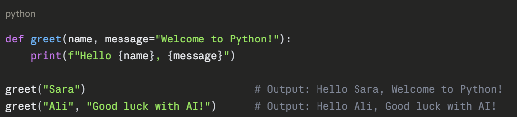 Rule: Default parameters must always be placed after non-default parameters in the function definition.