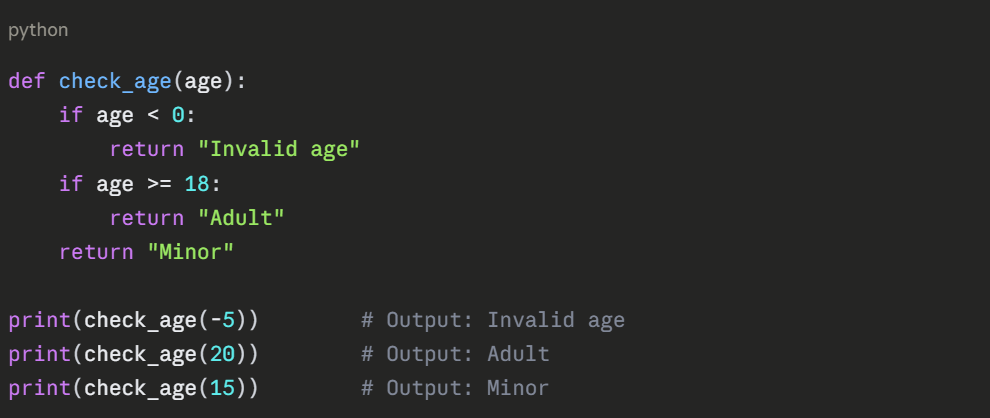 A function can return at any point. Once return is reached, the function exits immediately, remaining code in the function is skipped.