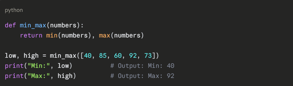A Python function can return more than one value at once. The values are packed into a tuple automatically.