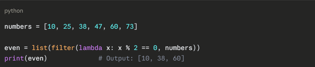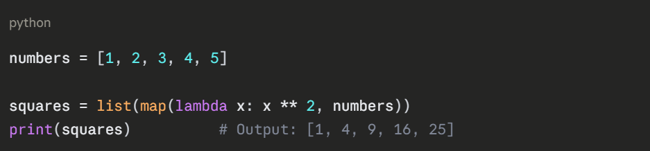 The real power of lambda functions shows when they are used alongside Python's built-in functions like map(), filter(), and sorted(). This is where they are most commonly used in practice.