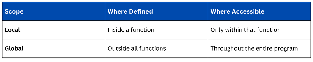 When you create a variable in Python, it does not automatically exist everywhere in your program. Where a variable can be accessed and used depends on where it was created, this concept is called scope.