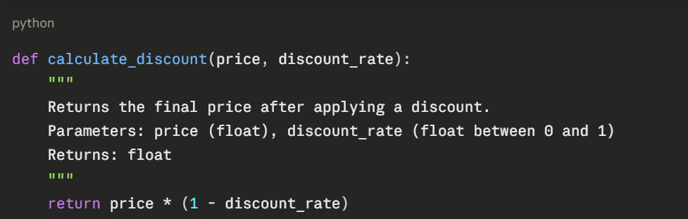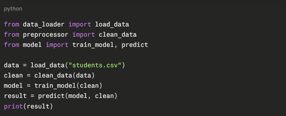 Writing modular code is a standard practice in software development and is especially important in AI projects where pipelines involve multiple stages of data processing, model training, and evaluation.