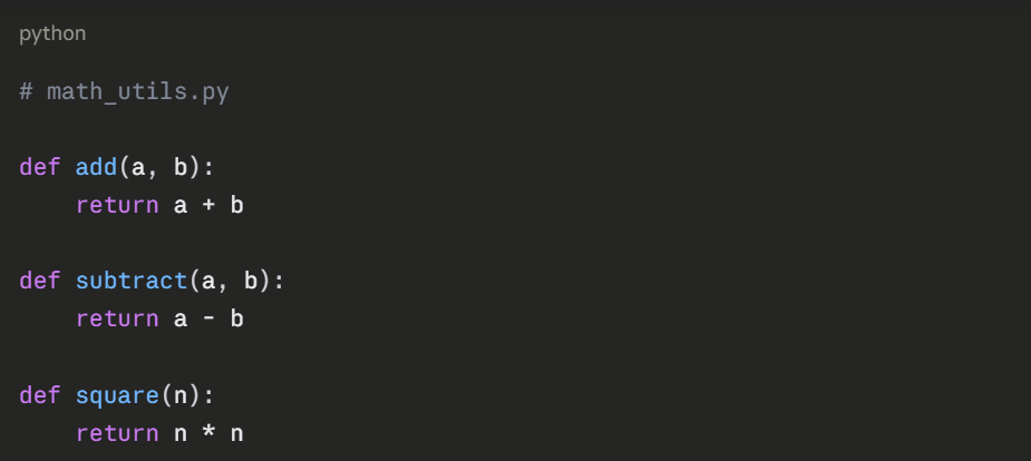 A module is simply a .py file containing functions, variables, or classes. Instead of writing everything in one file, you split related logic into separate files and import them where needed.