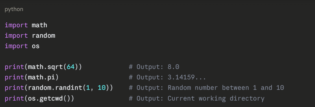 Python comes with a large standard library of ready-made modules. You do not need to write everything from scratch.