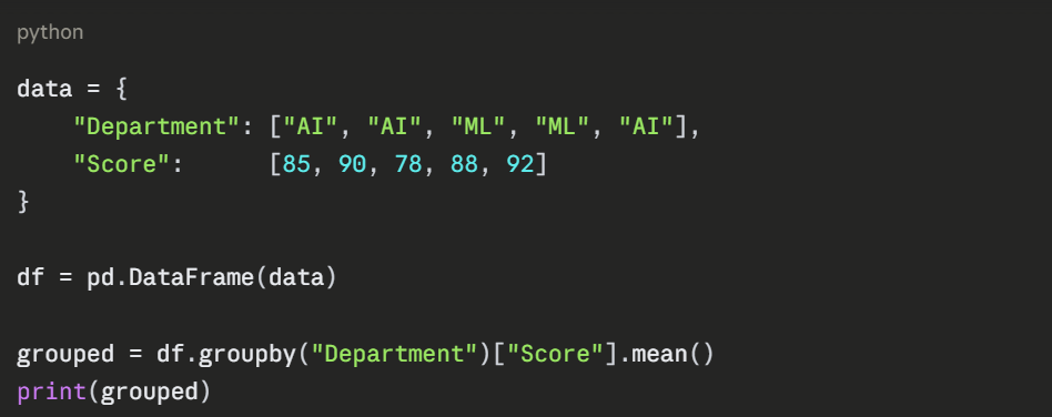 Grouping lets you summarize data by category — commonly used in exploratory data analysis.