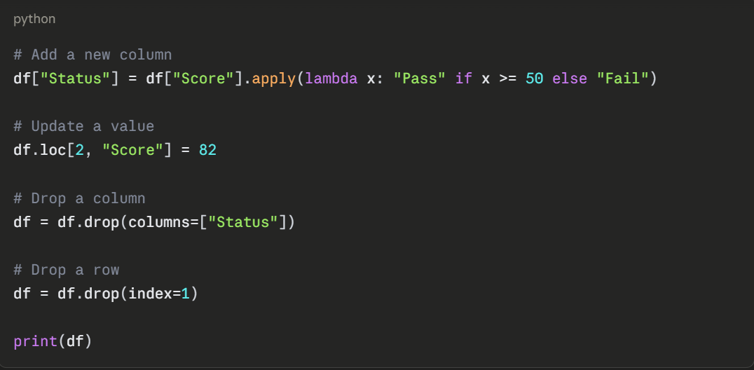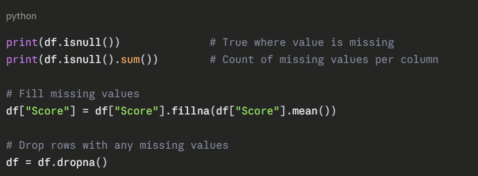 Real-world datasets almost always have missing values. Pandas provides simple tools to detect and handle them.