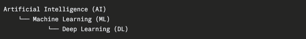1. AI is the broadest field — any technique that makes machines intelligent.