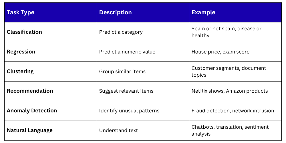 3. Deep Learning is a subset of ML — uses neural networks with many layers, ideal for images, speech, and text.