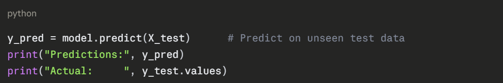 fit() is where the learning happens. The model analyses the training data and learns the patterns that separate the three species.