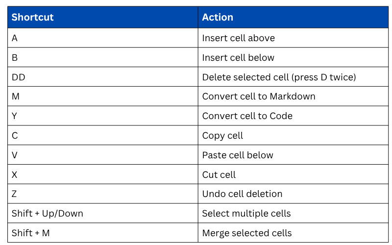 In command mode, keyboard shortcuts become powerful tools for navigation and cell manipulation.