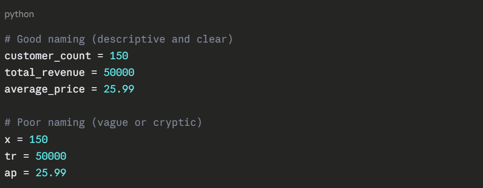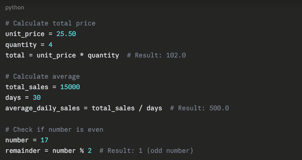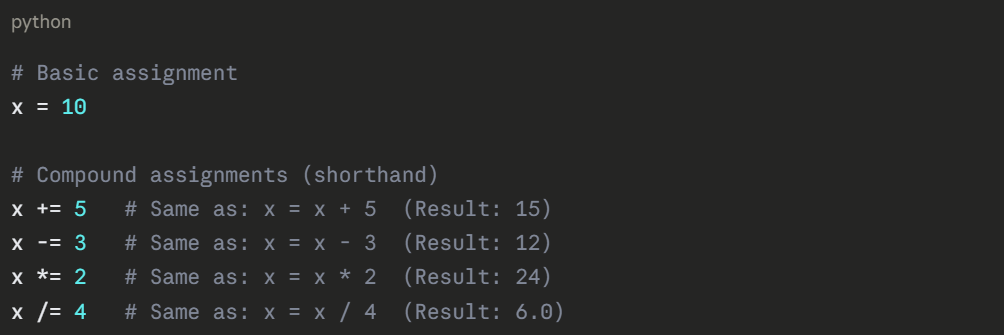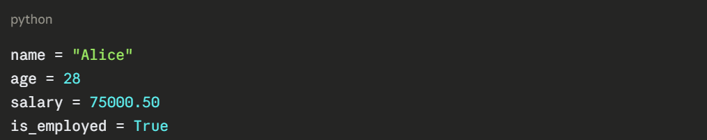 Every programming language requires a way to store information, classify different kinds of data, and perform operations on them. In Python, these fundamentals are called variables, data types, and operators—the building blocks of all data analysis code.