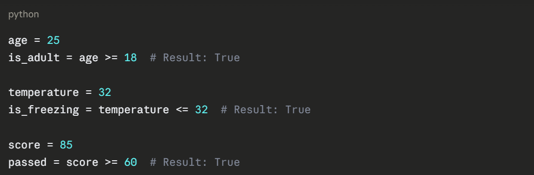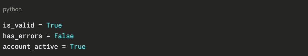 Booleans are essential for conditional logic and filtering data. Note that Python's boolean values are capitalized (unlike some other languages).