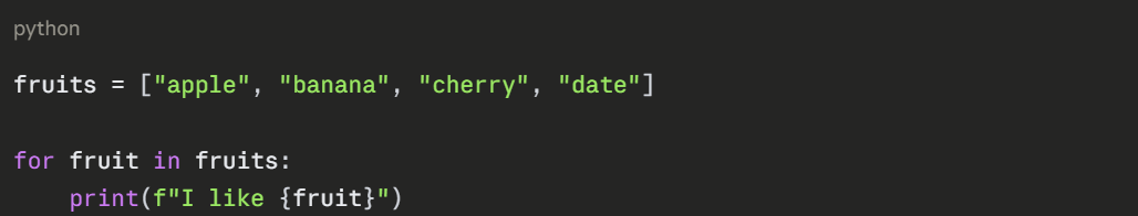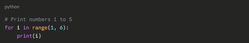 The for loop iterates over a sequence (list, range, string, etc.), executing code for each item: