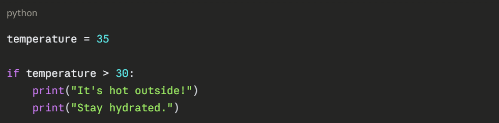 3. Indentation (4 spaces) defines which code belongs to the if block.