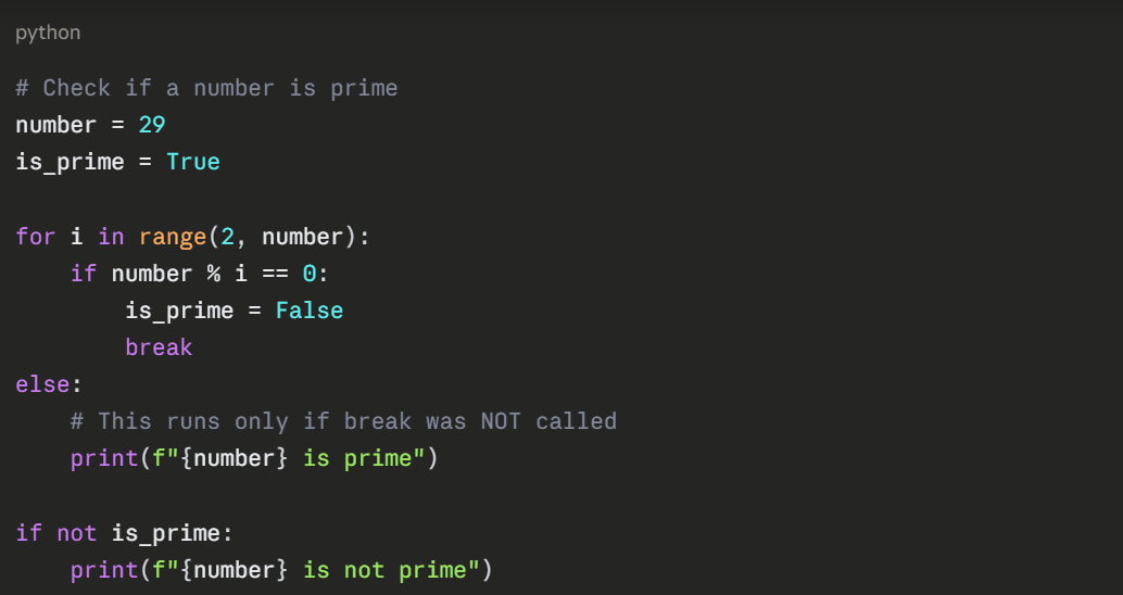 Python allows an else clause with loops—it executes when the loop completes normally (not via break):