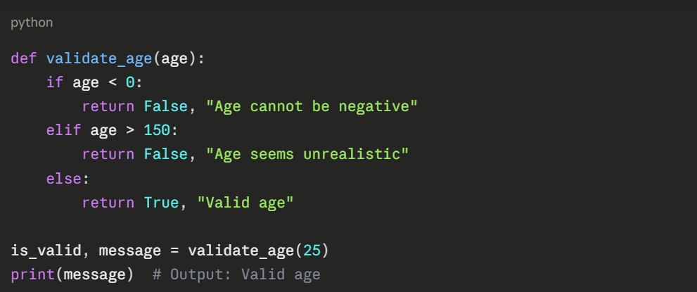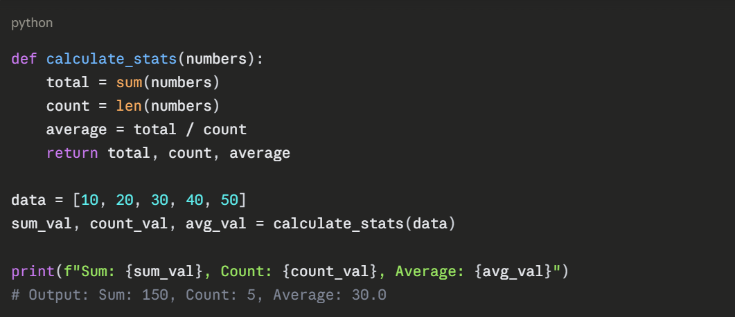 Python functions can return multiple values as a tuple: