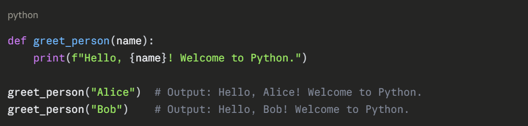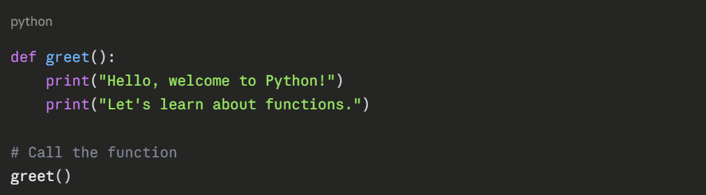 2. greet: Function name (follows variable naming rules).
