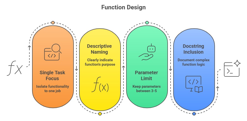 3. Readability: Well-named functions make code self-documenting.