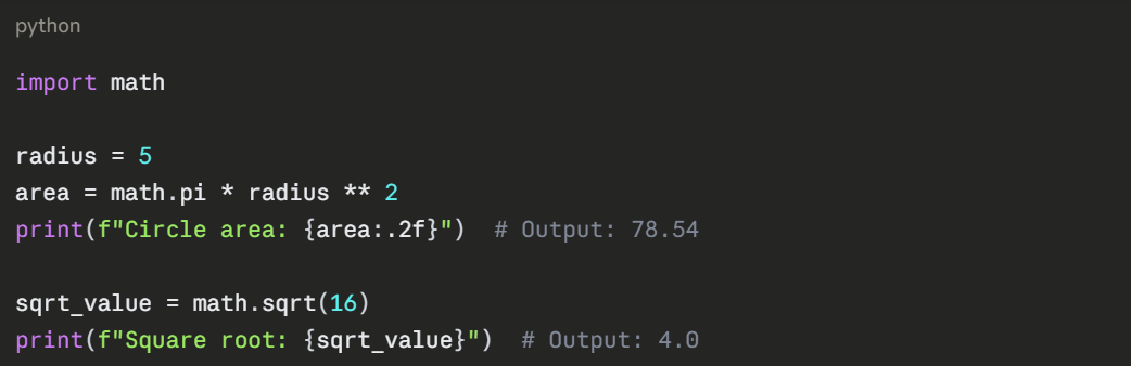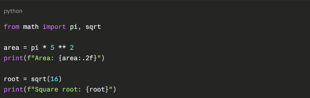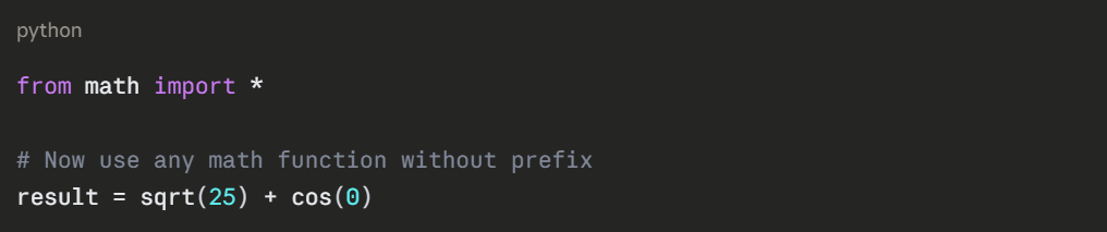 4. Prefer explicit imports (import math) over wildcard imports (from math import *).