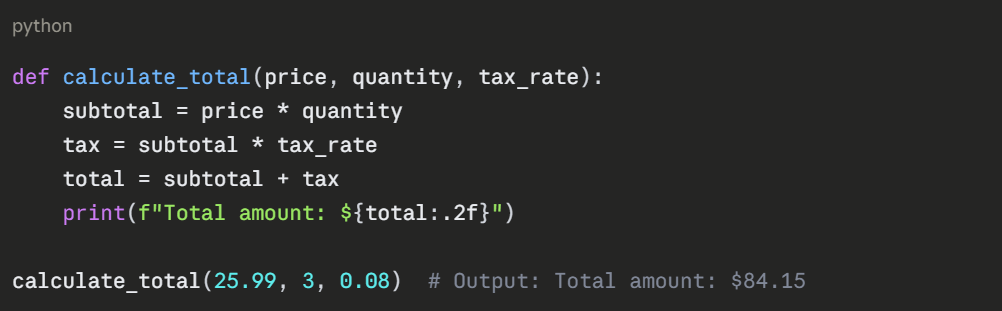 5. Indented code: The function's executable statements.
