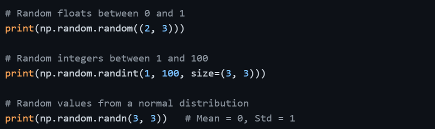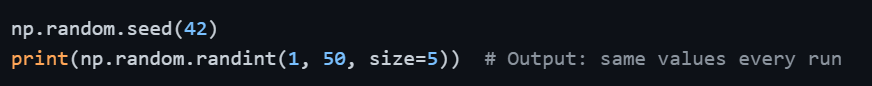 To ensure reproducibility, getting the same random values each time — use np.random.seed() before generating random arrays. This is a best practice when sharing or debugging data science code.