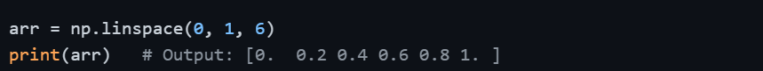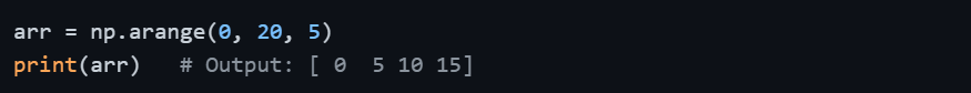 Works similarly to Python's built-in range(), but returns a NumPy array. It accepts start, stop, and step values.