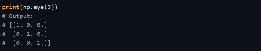 Creates a square matrix with ones on the diagonal and zeros elsewhere, commonly used in linear algebra.