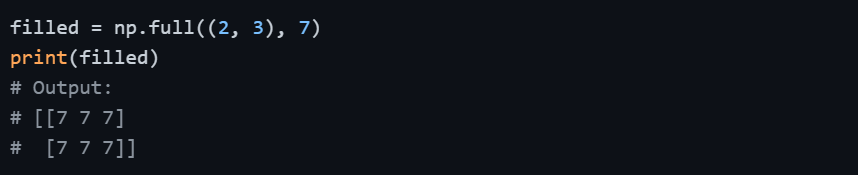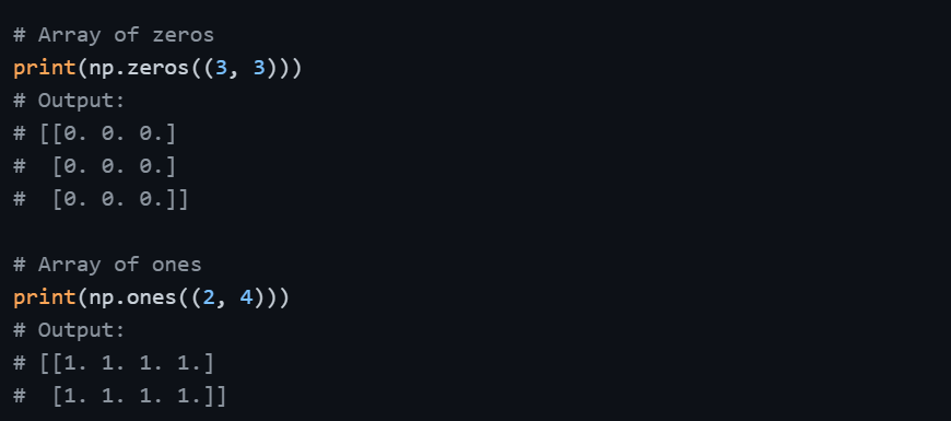 Rather than manually writing out values, NumPy provides dedicated functions to generate arrays efficiently. These are especially useful when initializing arrays for computations or placeholder data.