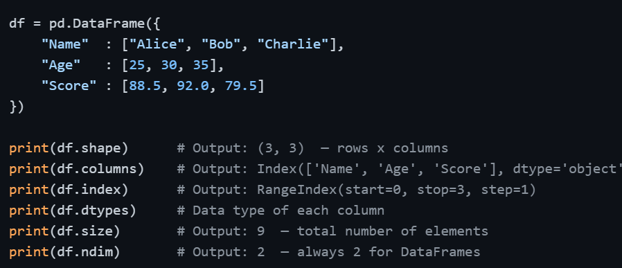 Once you have a DataFrame, these attributes give you an immediate structural overview.