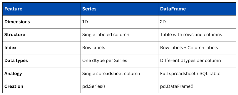 At the heart of Pandas are two core data structures, the Series and the DataFrame, and understanding them thoroughly is the first step to becoming proficient in data analysis with Python.