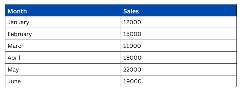 Or a line chart showing a clear upward sales trend from January to May with a slight dip in June? The chart communicates the same information in seconds, no mental calculation required.