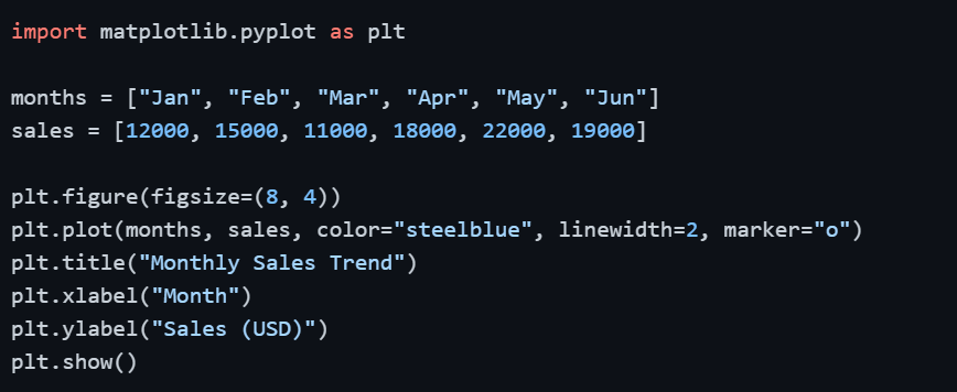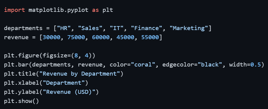 Once you are comfortable with the basics of Matplotlib, the next step is learning how to create the most commonly used chart types in data analysis.
