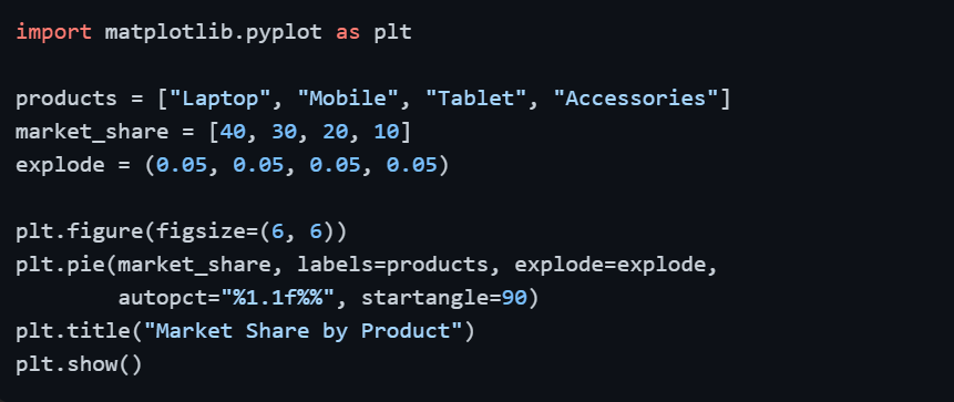 1. autopct — displays percentage values inside each slice (e.g., "%1.1f%%").