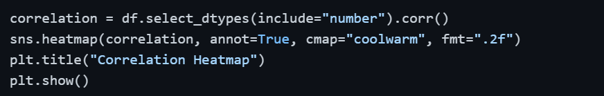 1. annot=True — displays the actual correlation values inside each cell