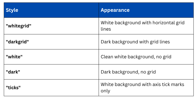 One of Seaborn's biggest advantages is its built-in styling system, which controls the overall look of all charts with a single line of code.