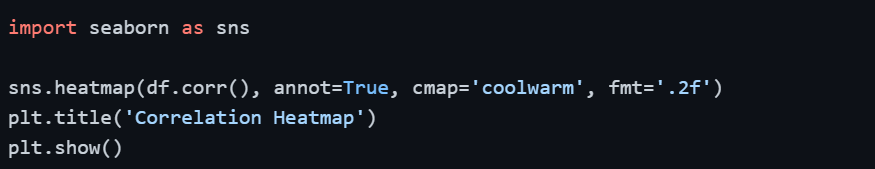 A heatmap turns the correlation matrix into a color-coded grid, making it effortless to spot strong and weak relationships across all variable pairs simultaneously.
