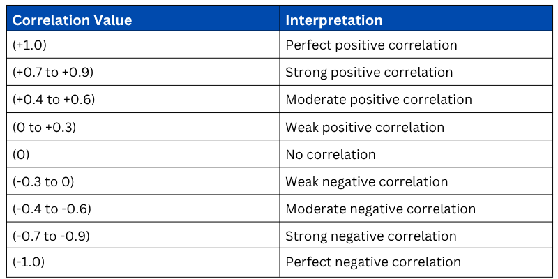 The closer the value is to +1 or -1, the stronger the relationship. A value near 0 means the variables have little to no linear relationship.