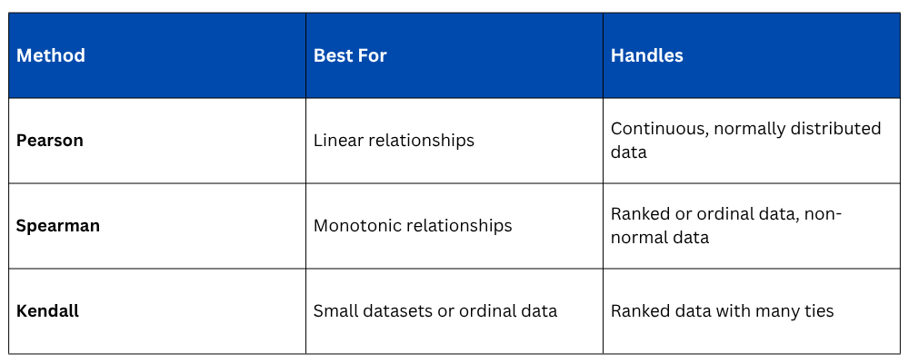 Types of Correlation Methods