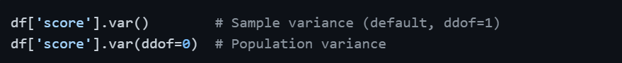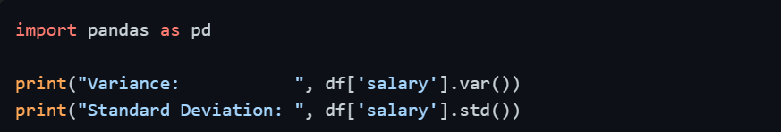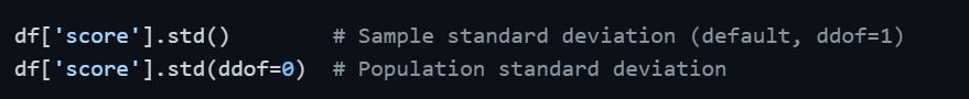 The .describe() output places the standard deviation (std) directly next to the mean, making it immediately easy to judge whether the mean is a reliable representative of the data or whether high spread makes it less trustworthy.
