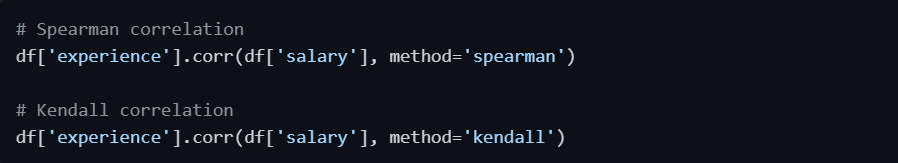 3. Kendall Rank Correlation is another rank-based method, more robust than Spearman for small datasets or data with many tied ranks. It measures the proportion of concordant versus discordant pairs in the data.