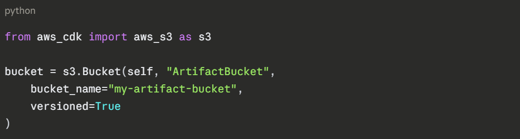 Here is what creating an S3 bucket looks like in CDK using Python — compared to doing the same thing in CloudFormation YAML: